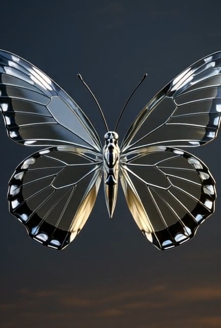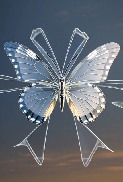 A crystalline butterfly remains still,
